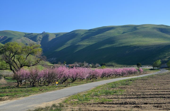 복숭아 꽃 만발한 Golman 의 어느 마을, Golman, CA